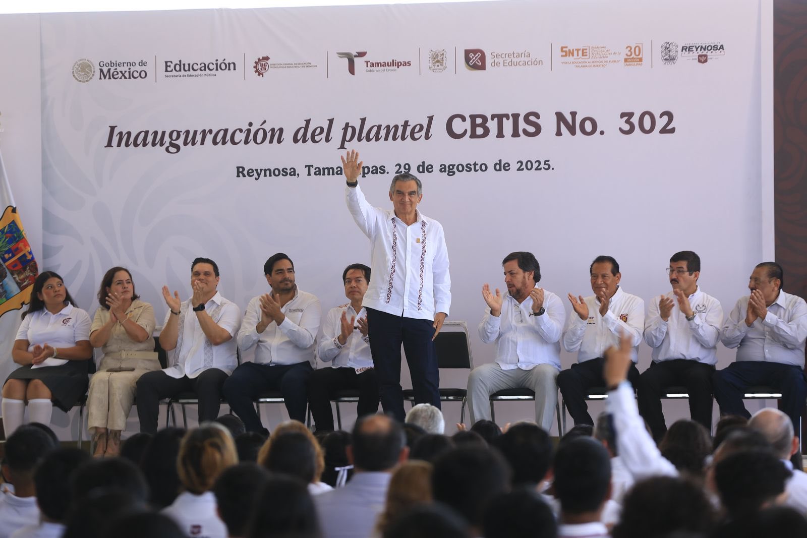 Miguel Ángel Valdéz García, secretario de Educación en Tamaulipas, destacó que, todos los alumnos de educación media superior «cuentan con un banco, con un maestro y con un aula como esta. No se nos quedó ninguno fuera», expresó.