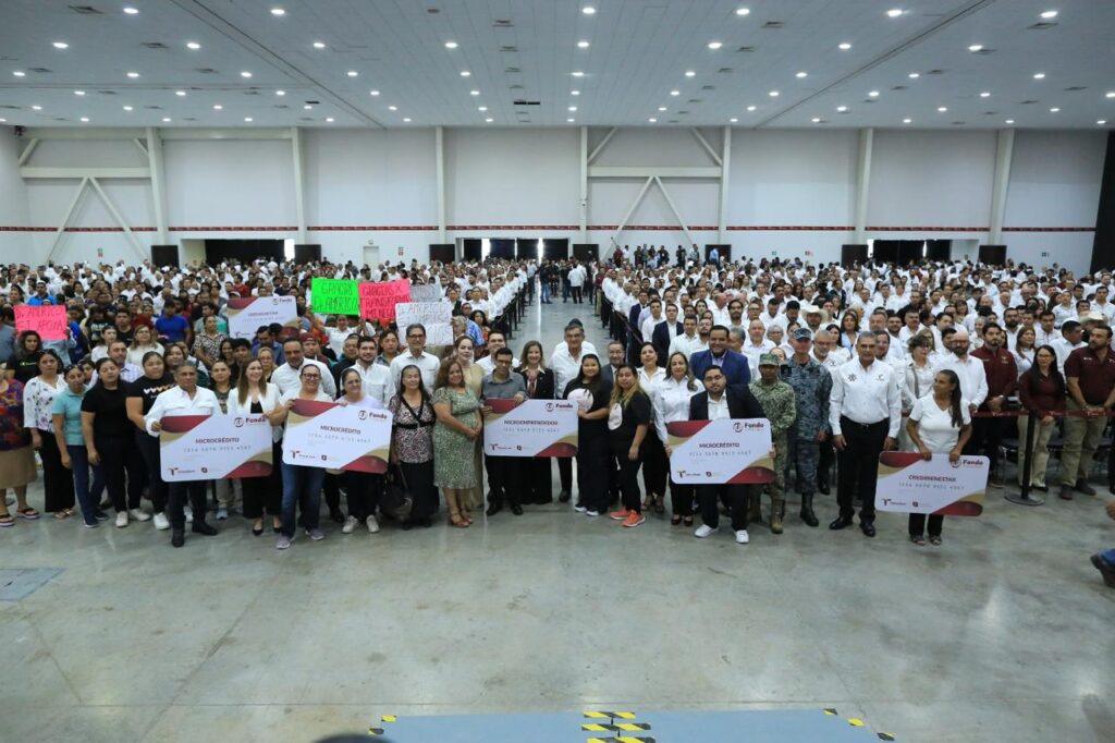 Durante la ceremonia de honores a la bandera, este lunes, en el Polyforum de esta capital, el gobernador entregó de manera simbólica recursos a cinco grupos de beneficiarios de los Programas Microcrédito, Microemprendedor y Credi Bienestar, de los municipios de Jiménez, Jaumave, San Fernando, Victoria y del SIPRODDIS y reconoció el apoyo de Nacional Financiera (NAFIN) para beneficiar a los emprendedores para que puedan acceder a créditos con tasas preferenciales, lo que permite apuntalar uno de los objetivos del Plan México que se refiere precisamente al financiamiento a micro, pequeñas y medianas empresas.